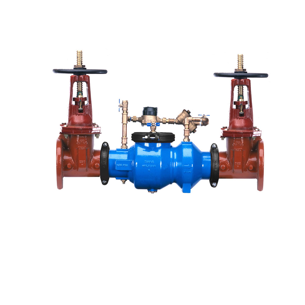 Wilkins 350ADA 8 inch double check detector assembly protects against both backsiphonage and backpressure. A 3/4 inch 950XLD by-pass assembly is added to detect leaks and unauthorized water use.